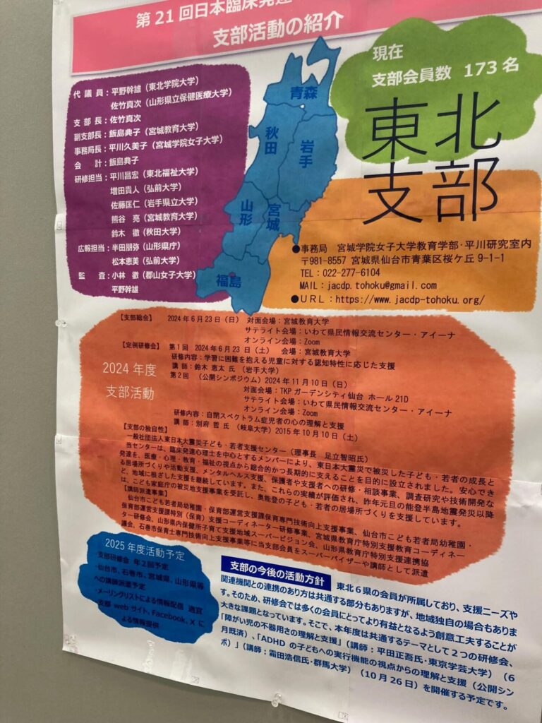ポスターのデザインがどの支部もユニークで、見ているだけで楽しくなるような気がしましたし、他支部の皆様とただお話しするだけでも元気が出てくるような気がしました。臨床発達心理士のアイデンティティの確認にも役立っているような気がします。