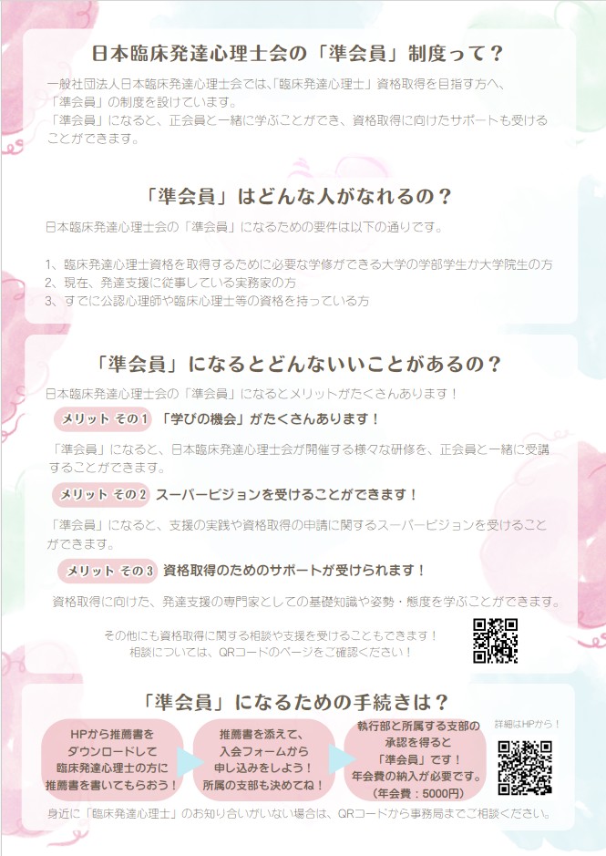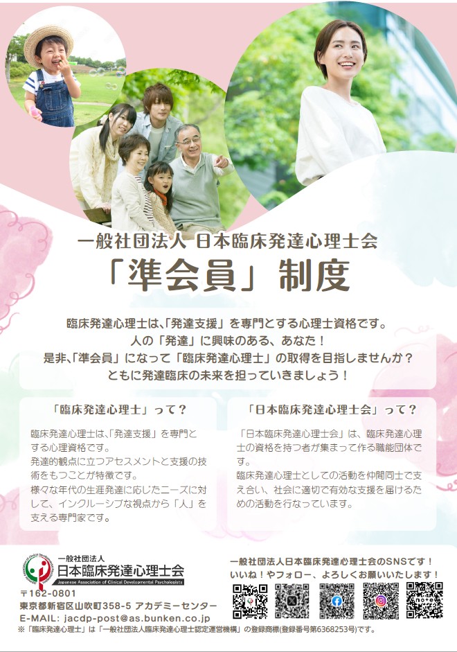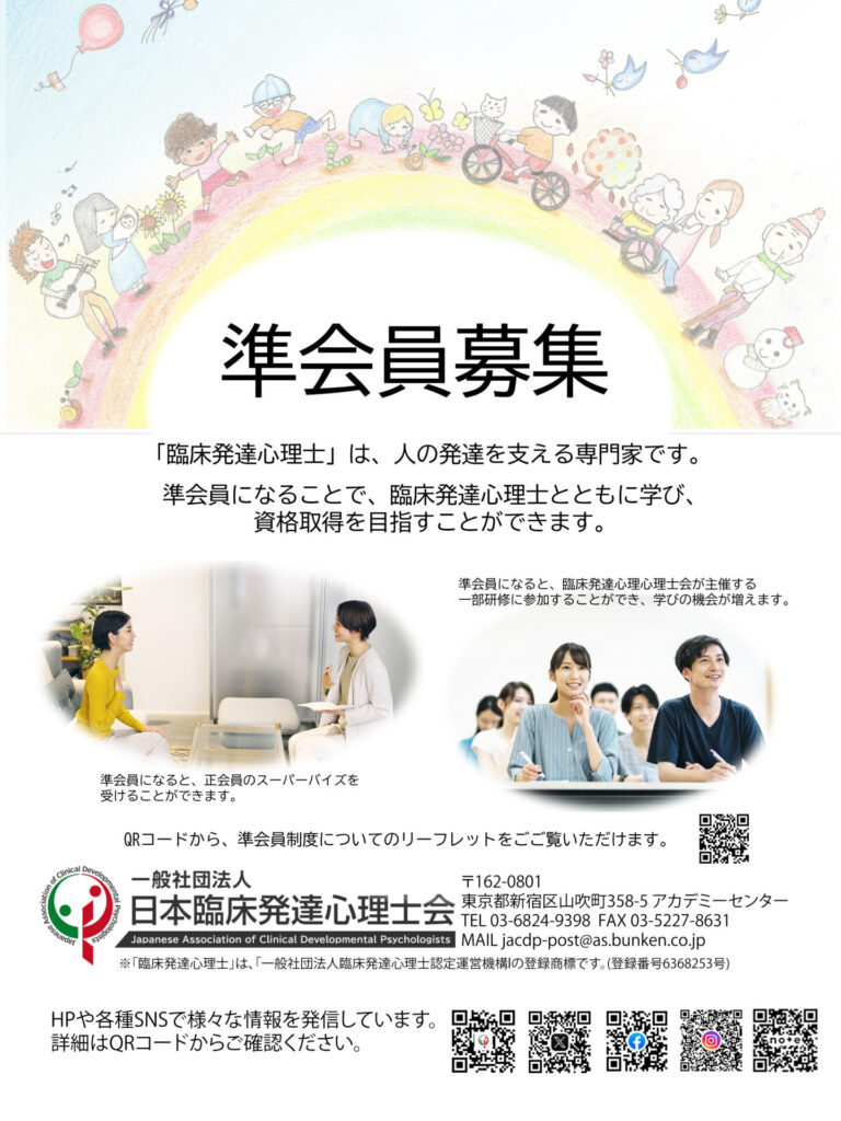 臨床発達心理士会の準会員募集のポスターは、ここからダウンロードしていただけます。