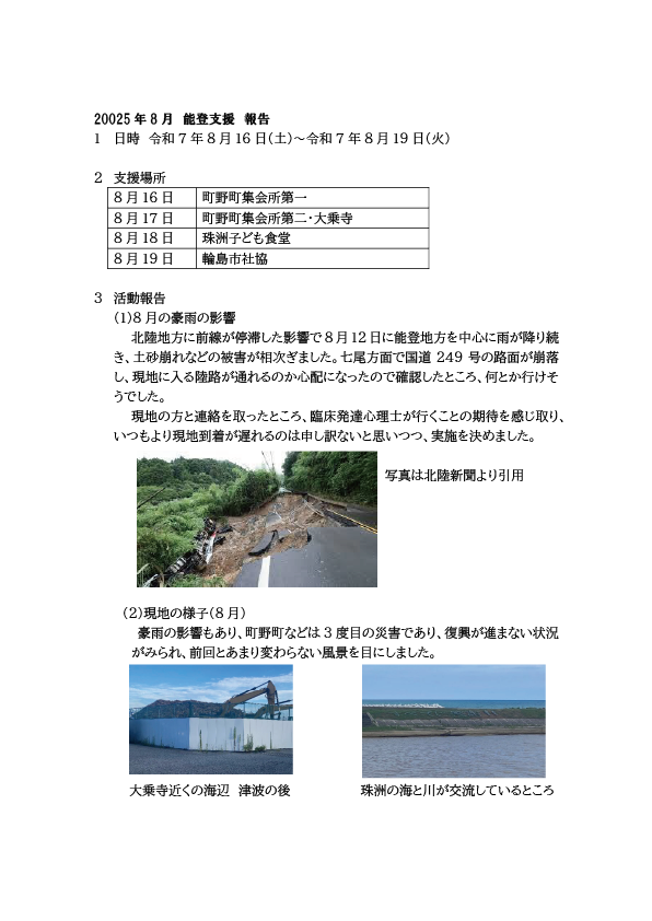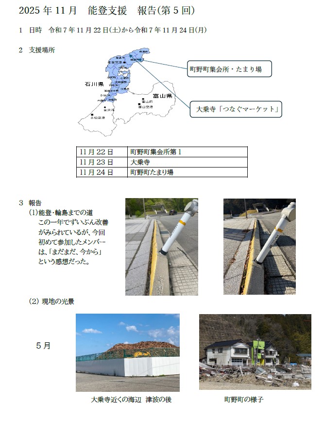 1月1日の能登半島地震においては地域に甚大な被害を及ぼしました。一般社団法人日本