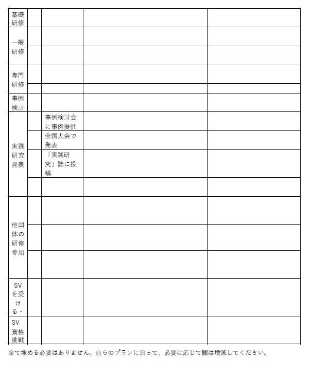 研修委員会では、それぞれの研修区分において臨床発達心理士に求められる資質・能力の研修要点一覧表を作成しました。全国研修会では、これらをもとに、その時々に必要とされるテーマに焦点を合わせて研修会を開催していきます。会員の皆様には、自分に必要な研修内容を検討する際の参考にしていただくことが目的です。